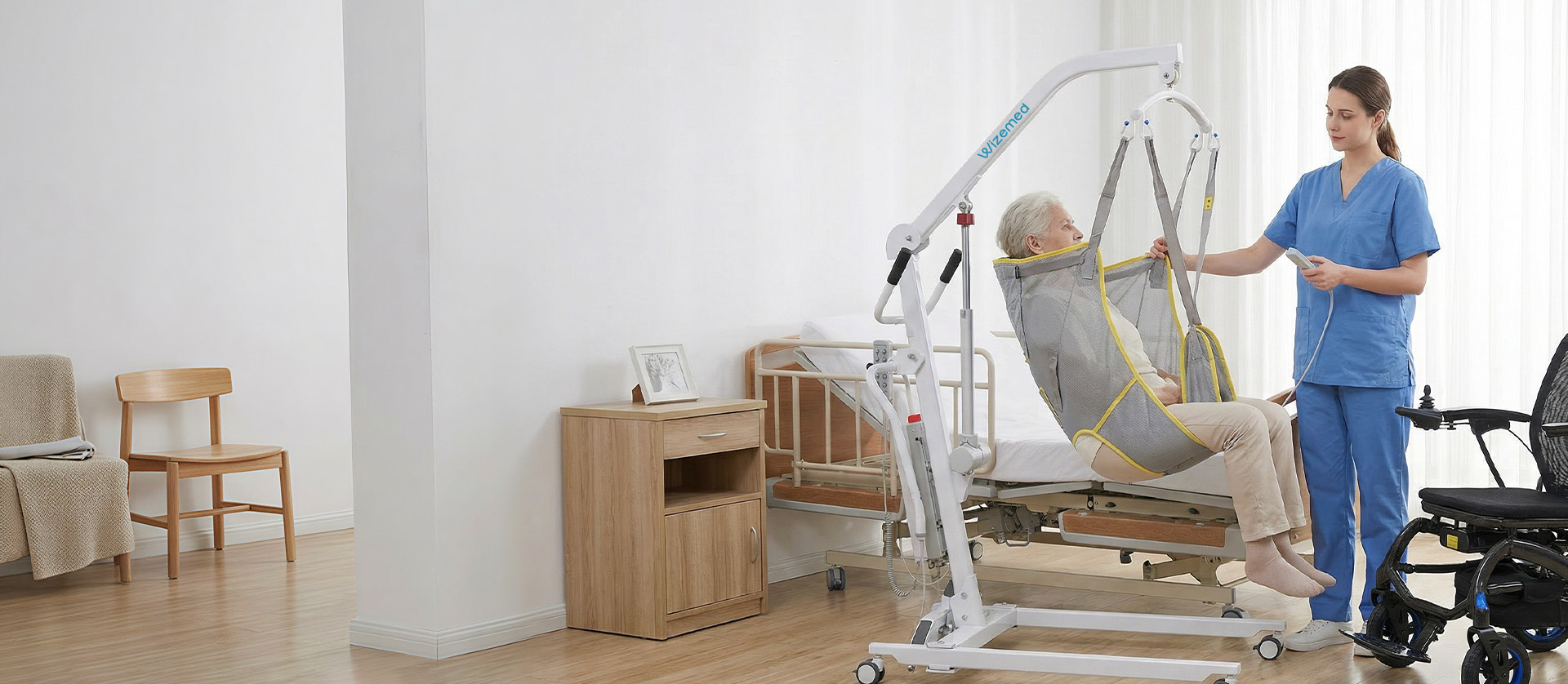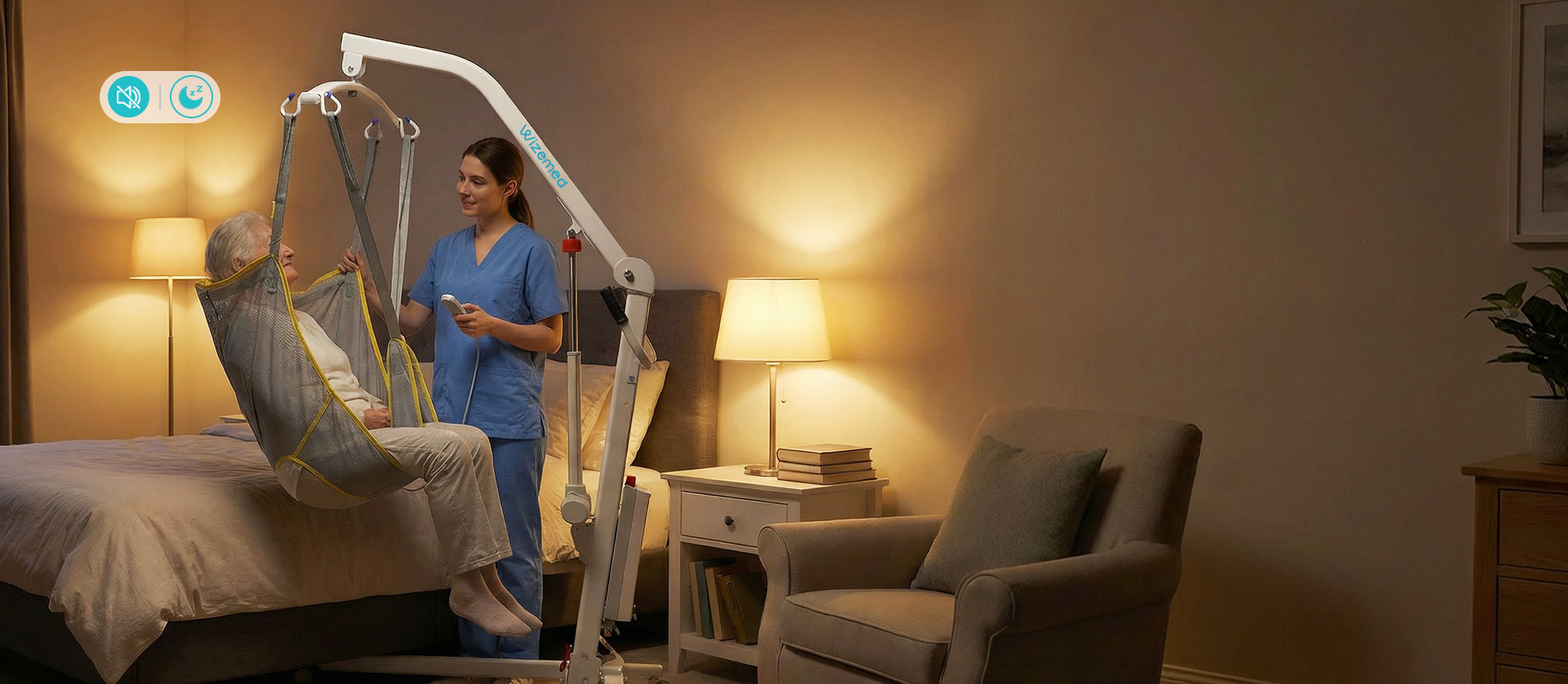 Der Wizemed PL301 ist ein kompakter Steh-Hilfslifter, der für sicheres Stehen und Sitz-Transfers in der häuslichen Pflege, Rehabilitation und Langzeitpflege entwickelt wurde. Er bietet eine sanfte, effiziente Unterstützung für Benutzer und Pflegekräfte, mit einem optionalen Rehabilitation-Hilfsgriff für zusätzliche Stabilität während der frühen Mobilitäts- und Stehtraining-Phase. Mehrere Heb- und Spreizoptionen ermöglichen eine einfache Positionierung, während die 360° drehbare Aufhängestange eine bequeme Anpassung gewährleistet. Mit einer Bodenfreiheit von 12 cm bewegt sich der PL301 einfach unter Betten und durch enge Räume. Der medizinisch geräuscharme Betrieb minimiert Störungen, und integrierte Sicherheitsfunktionen – einschließlich Not-Aus und manueller Notabsenkung – sorgen für eine zuverlässige, benutzerfreundliche Leistung im täglichen Pflegeeinsatz.